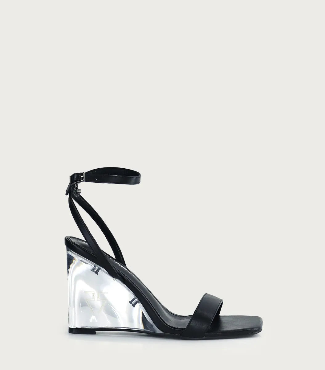 Sandalia Prata negro en fibras animal friendly, con hebilla con logo y forrería en fibras animal friendly. Taco acrílico con logo grabado a láser y suelín de goma para confort. Altura del taco: 9 cm. Una opción elegante. Cuidados:No mojar, no lavar, evitar fuertes roces ya que se puede desgastar material y original o dañar los apliques.